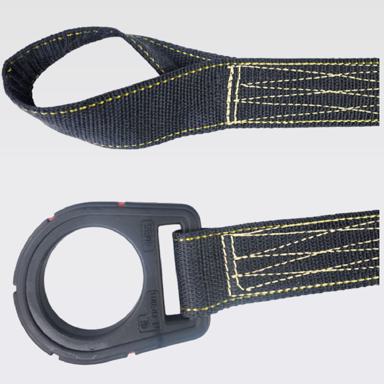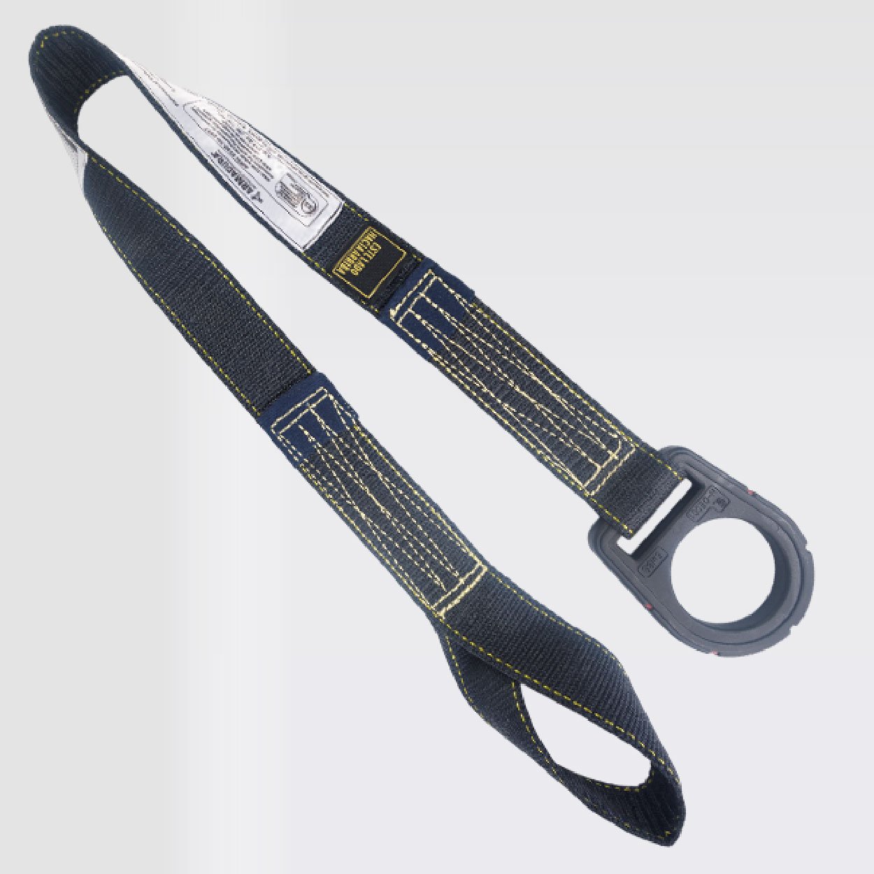 Adaptador de anclaje portátil, parte de un sistema personal de detención y protección de caídas, certificado bajo las normas ANSI/ASSE Z359.18:2017 y cumpliendo con los lineamientos de la ANSI/ASSE Z359.12:2019. Con argolla recubierta en nylon con resistencia dieléctrica de 9Kv, equivalente a 9000V, reata ignifuga resistente al calor y las llamas. Cumpliendo con los lineamientos de la ASTM F887:23 (40 Cal/Cm2)*. resistencia de 5000 libras O 22,2Kn, 5MBS .