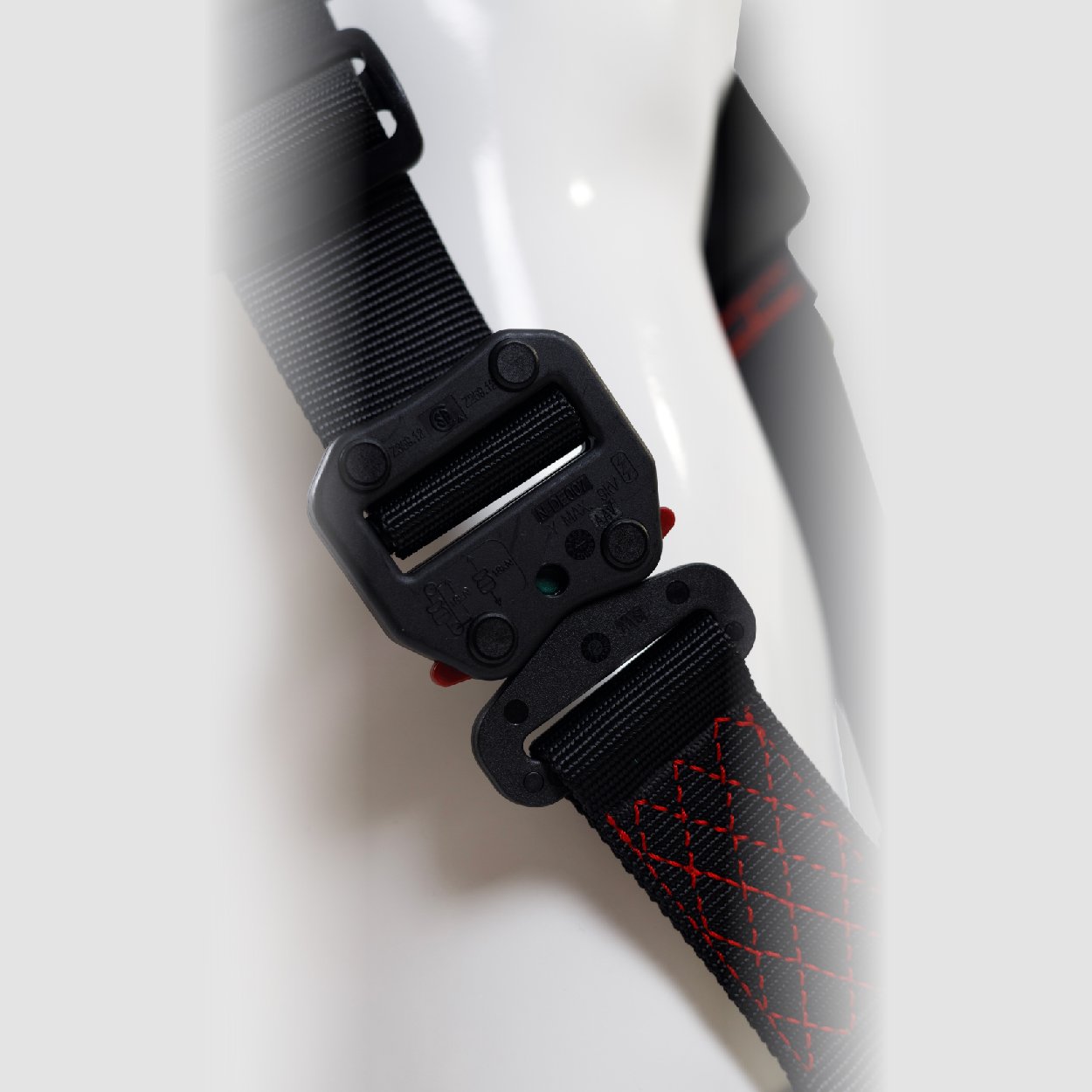 Arnés industrial de cuerpo completo, parte de un sistema Personal de detención de caídas, con diseño cruzado, certificado bajo la Norma ANSI/ASSE Z359.11:2021,