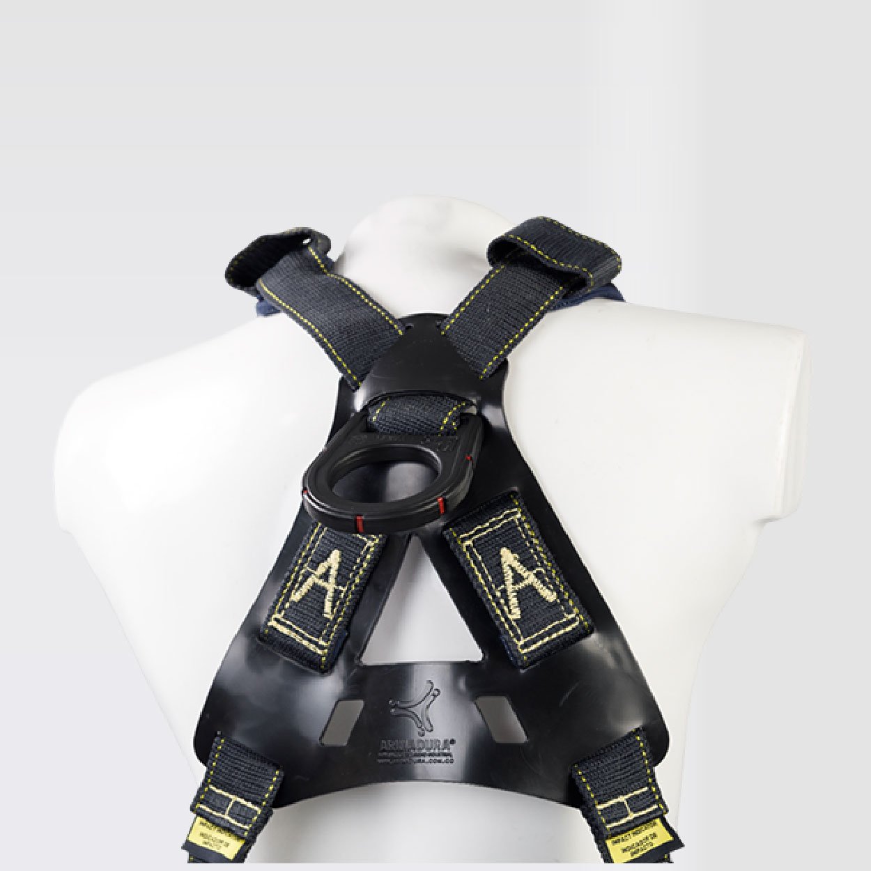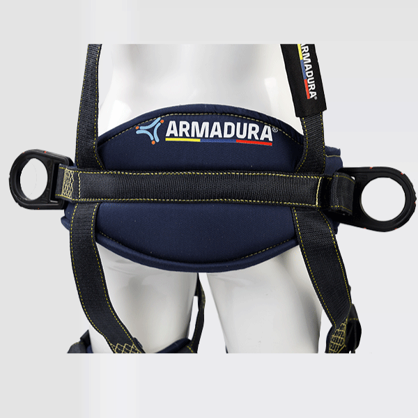 Arnés industrial de cuerpo completo, parte de un sistema Personal de detención de caídas, con diseño en ̈Y ̈ y soporte lumbar