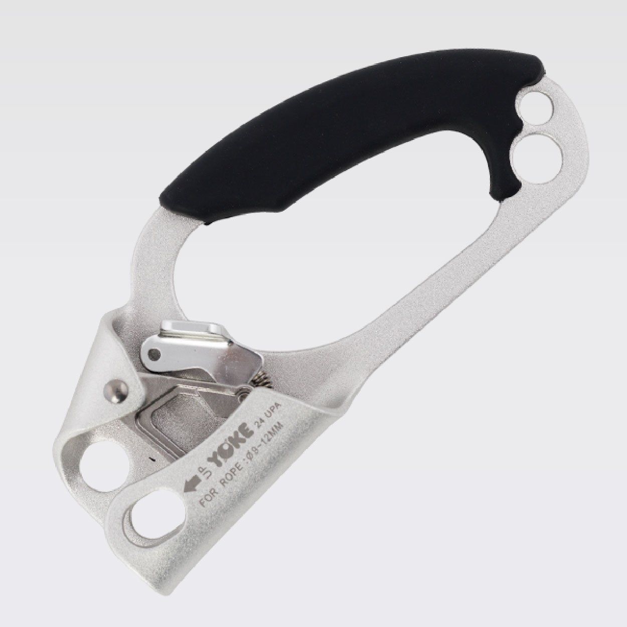 Ascendedor con Mango de Mano Derecha, diseñado para facilitar el ascenso eficiente y seguro por cuerda en trabajos en altura, acceso por cuerda y operaciones de rescate. Su diseño ergonómico se adapta naturalmente a la mano derecha, ofreciendo un agarre cómodo, firme y antideslizante que reduce la fatiga durante el uso prolongado.
