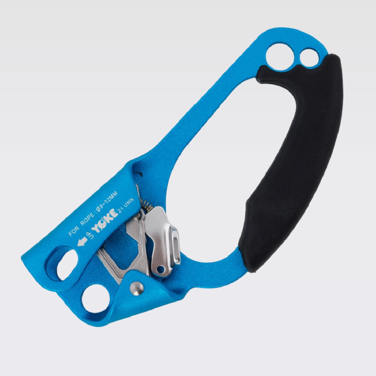 Ascendedor con Mango de Mano Izquierda, diseñado para proporcionar un ascenso seguro, eficiente y controlado por cuerda en trabajos en altura, acceso por cuerda y operaciones de rescate. Su diseño ergonómico se adapta perfectamente a la mano izquierda, ofreciendo un agarre cómodo, firme y antideslizante que reduce la fatiga durante maniobras prolongadas.
