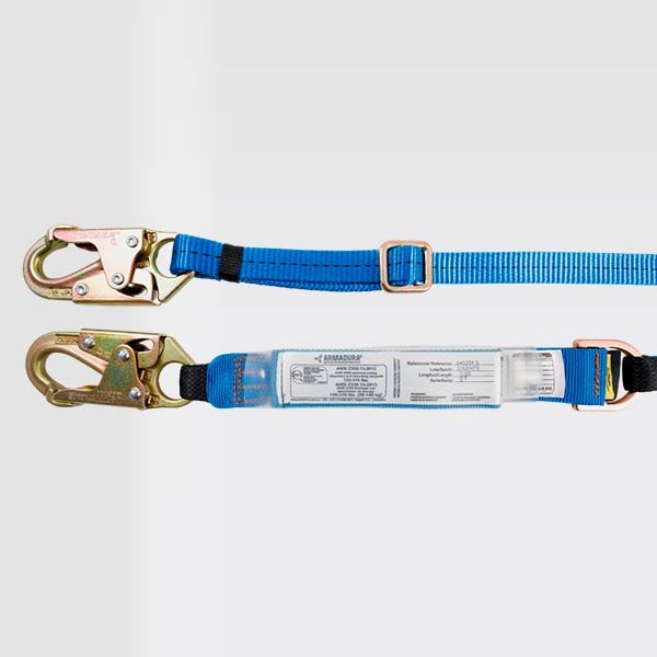 Eslinga certificada bajo la Norma ANSI/ASSP Z359.13-2013, provisto de dos ganchos de 3⁄4 en acero con recubrimiento anodizado, reata bicolor (azul- negro) de 44mm y/o reata en color azul de 25mm de ancho. resistencia de 5000 libras o 22,2Kn, 5MBS.