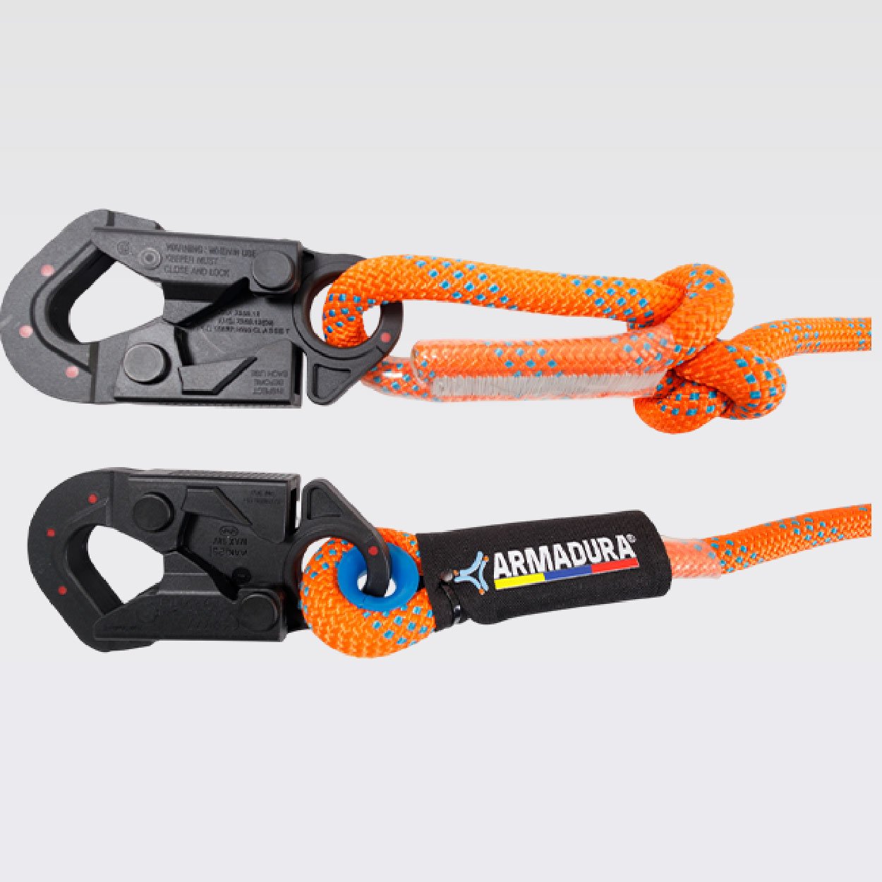 Z359.3:2019. Provisto de dos ganchos de 3⁄4 en acero recubiertos con nylon con resistencia dieléctrica de 9Kv. equivalente a 9000V. resistencia de 5000 libras o 22,2Kn, 5MBS*.
