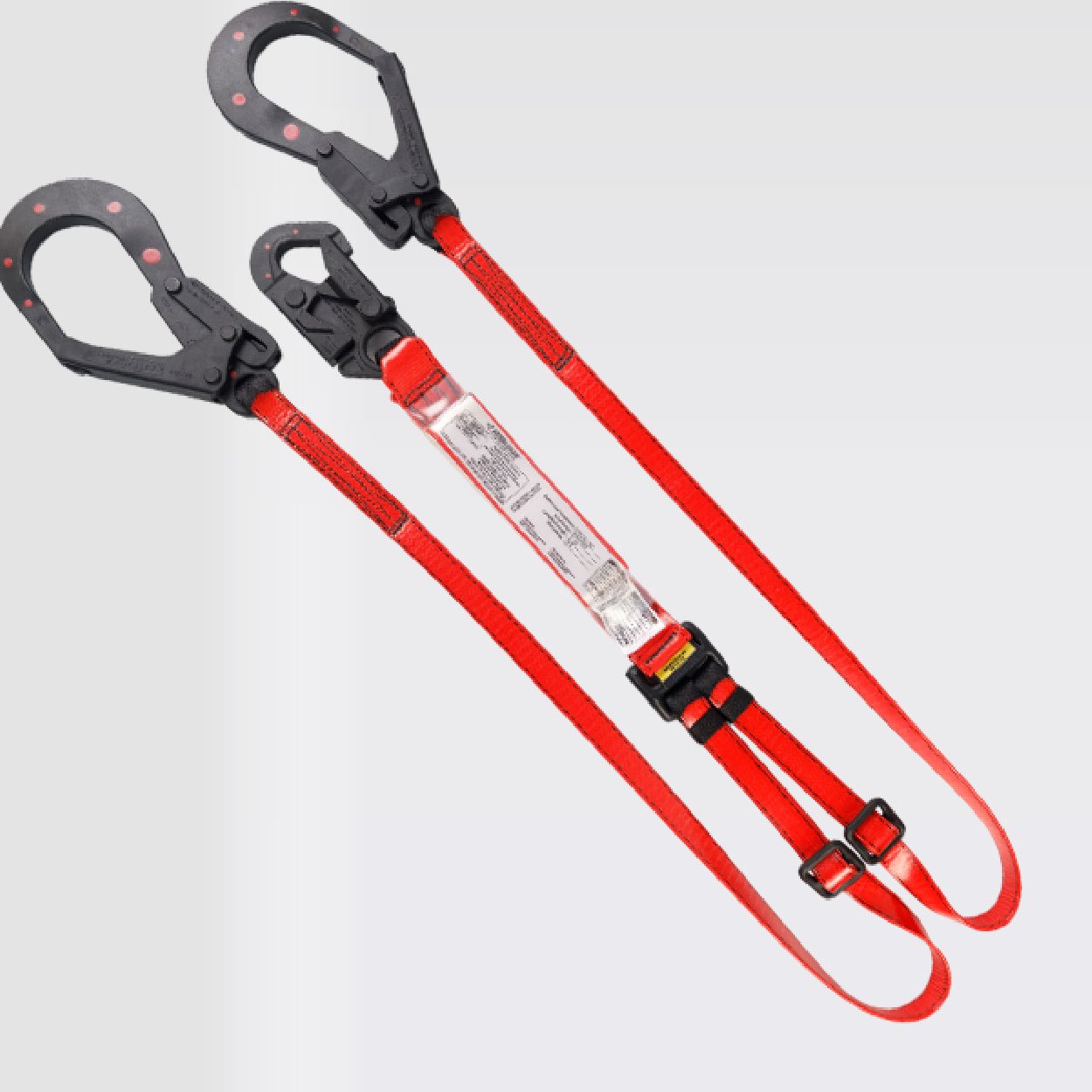 Eslinga de protección, dieléctrica, doble terminal graduable, con absorbedor de energía, parte de un sistema Personal de detención de caídas, certificada bajo la