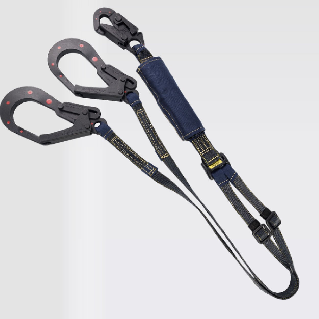 Eslinga de protección, dieléctrica, doble terminal graduable, con absorbedor de energía, parte de un sistema Personal de detención de caídas, certificada bajo la