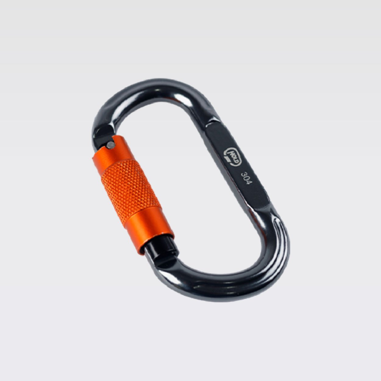 Mosquetón. Aleación de aluminio forjado AL7075, terminado anodizado , figura simétrica, especial para conectar equipos de trabajo en alturas, trabajos exigentes y labores de rescate, perfil en H, para proteger el marcaje del desgaste.